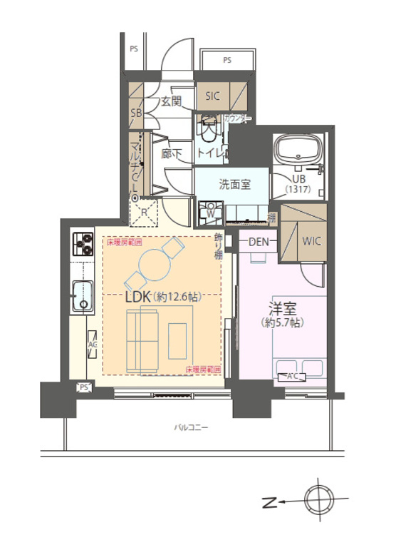1LDK / 47.91㎡(専有面積)