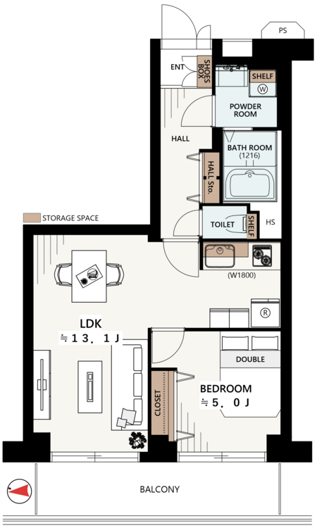 1LDK / 45.13㎡(専有面積)