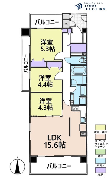 3LDK / 76.15㎡(専有面積)