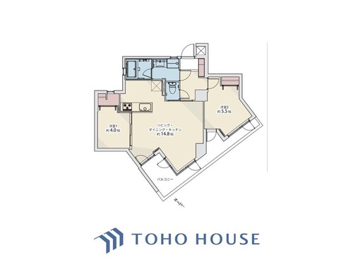 2LDK / 54.96㎡(専有面積)