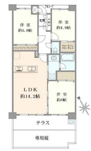 専用庭 / バルコニー / 温水洗浄便座 / 洗濯機置き場(有) / 追焚機能 / 浴室乾燥機 / ウォークインクローゼット / 全居室収納