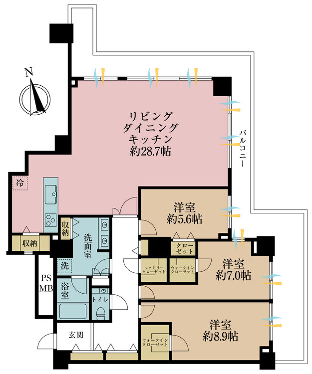 | バルコニー | 有 30.8㎡ | 主要採光面 | 東 |