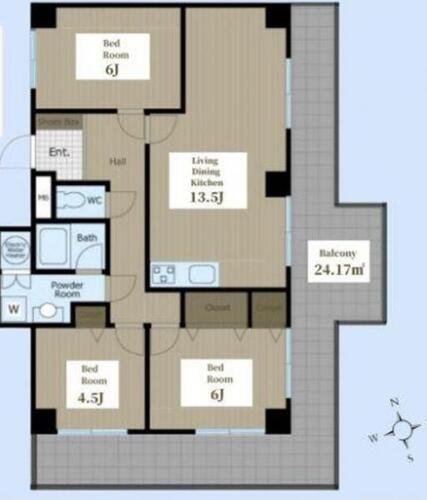 | バルコニー | 有 24.17㎡ | 主要採光面 | 南東 |