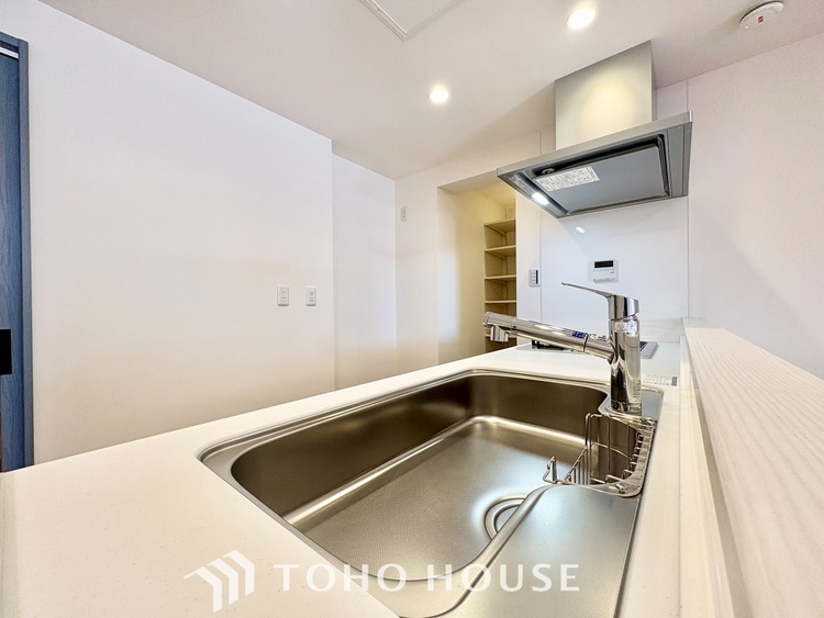 ガスコンロ / 対面式キッチン / 食器洗い乾燥機 / パントリー(食器・食品の収納庫) / コンロ三口 / システムキッチン
