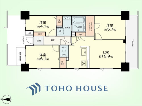 バルコニー / 南面バルコニー / バス・トイレ別 / オートバス / 追焚機能 / 浴室乾燥機 / 独立洗面台 / 脱衣所あり / 洗濯機置き場(室内) / 洗濯機置き場(有) / ウォークインクローゼット / クローゼット / シューズボックス / 全居室収納