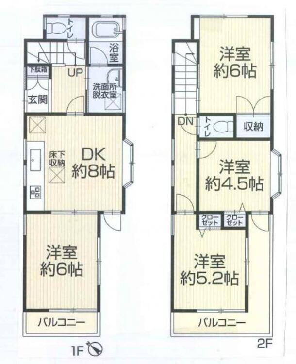 バルコニー / バス・トイレ別 / 温水洗浄便座 / 独立洗面台 / 追焚機能 / 浴室乾燥機 / 床下収納