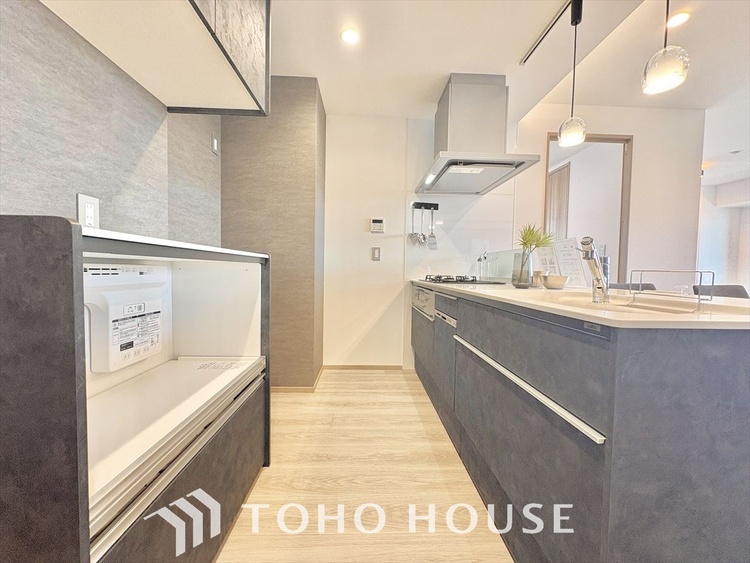 ガスコンロ / コンロ三口 / システムキッチン / 対面式キッチン / 食器洗い乾燥機 / 浄水器・活水器 / パントリー(食器・食品の収納庫)