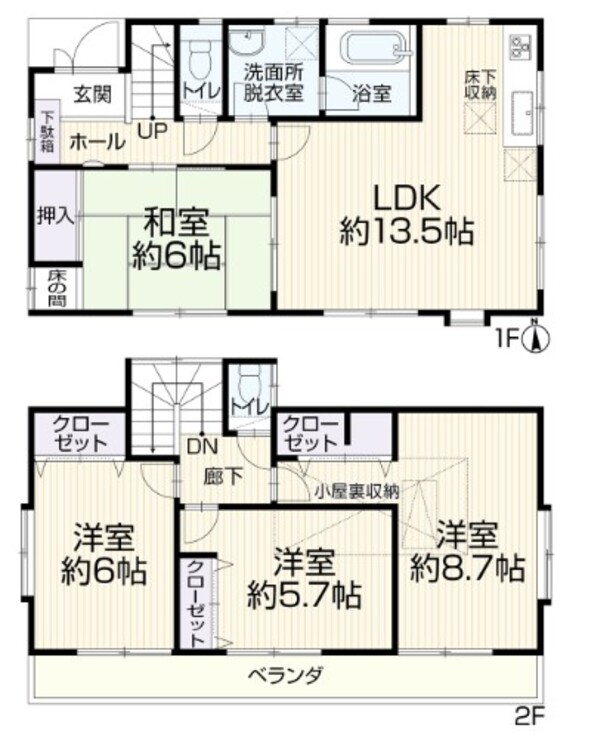 バルコニー / ワイドバルコニー / バス・トイレ別 / 温水洗浄便座 / 独立洗面台 / 床下収納 / 全居室収納