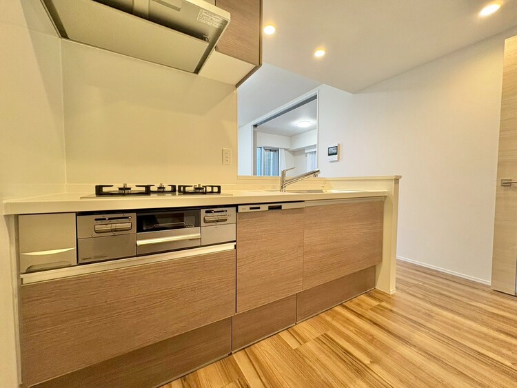 対面式キッチン / 食器洗い乾燥機 / 浄水器・活水器 / コンロ三口 / システムキッチン