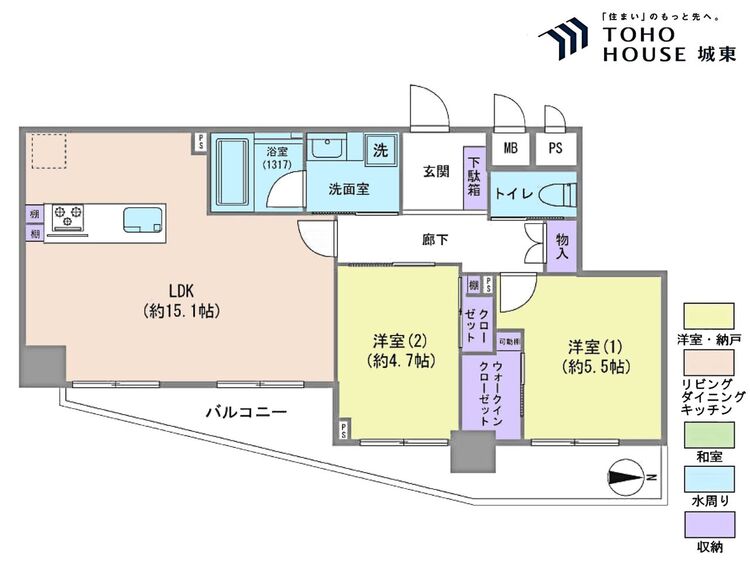 2LDK / 59.78㎡(専有面積)