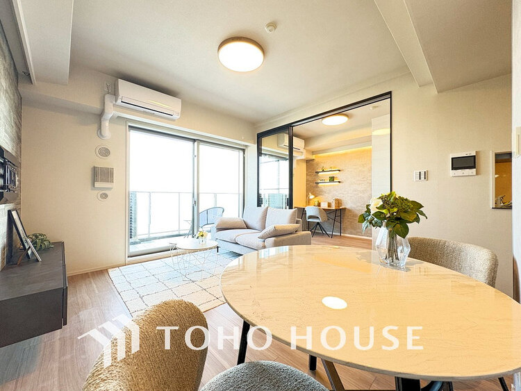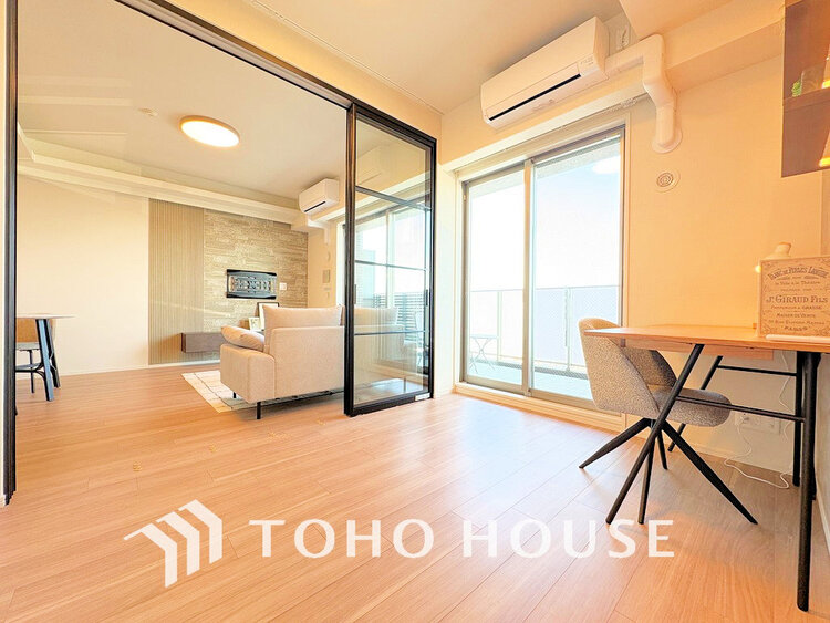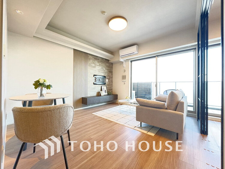 ・LDK意匠壁、照明追加・クロス張替・建具一部・トイレ・磁器タイル敷設(バルコニー)・エアコン設置