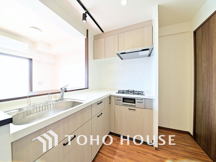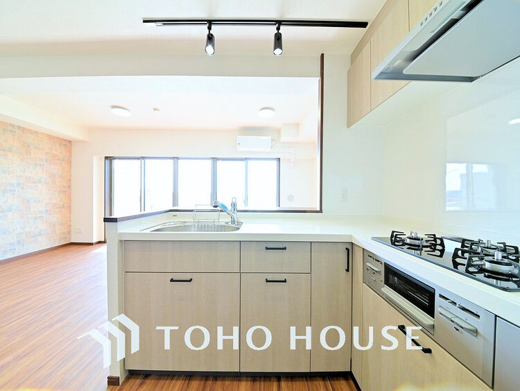 ガスコンロ / 対面式キッチン / 浄水器・活水器 / コンロ三口 / システムキッチン