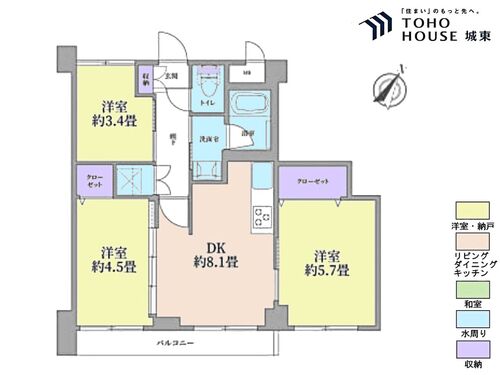 3DK / 49.68㎡(専有面積)