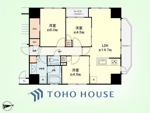バルコニー / バス・トイレ別 / 温水洗浄便座 / 独立洗面台 / 脱衣所あり / 洗濯機置き場(室内) / 洗濯機置き場(有) / ウォークインクローゼット / クローゼット / シューズインクローゼット / 全居室収納