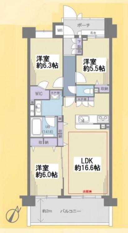 | バルコニー | 有 12.4㎡ | 主要採光面 | 南東 |