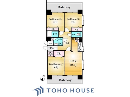 3LDK / 64.13㎡(専有面積)