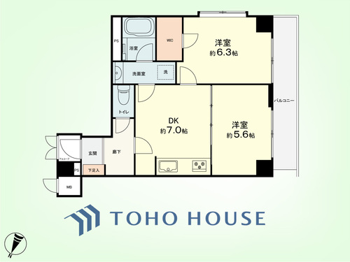 2DK / 45.87㎡(専有面積)