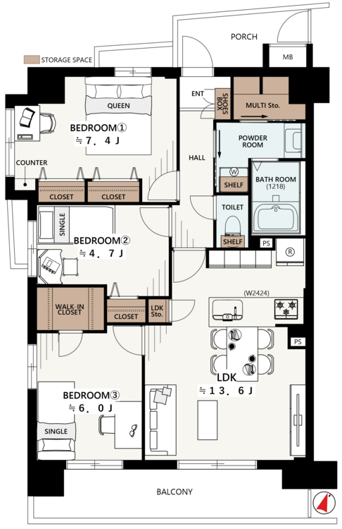 ■マルチ収納、洋室3にWICがあり収納豊富