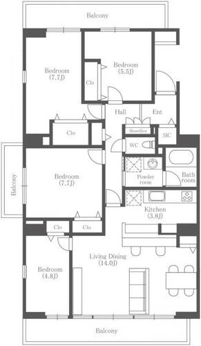 4LDK / 97.77㎡(専有面積)
