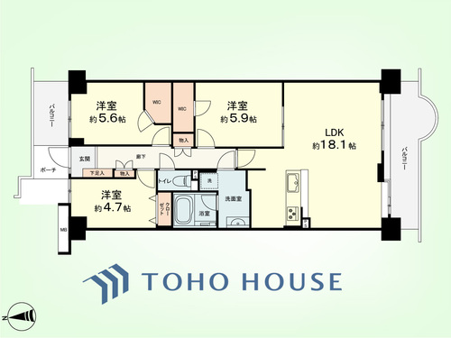 3LDK / 76.8㎡(専有面積)