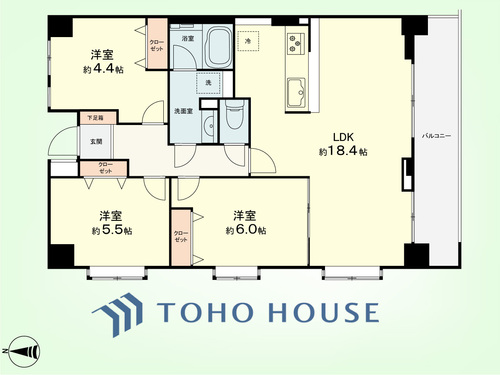 バルコニー / 南面バルコニー / バス・トイレ別 / オートバス / 追焚機能 / 浴室乾燥機 / 温水洗浄便座 / 独立洗面台 / 脱衣所あり / 洗濯機置き場(室内) / 洗濯機置き場(有) / クローゼット / シューズボックス / 全居室収納