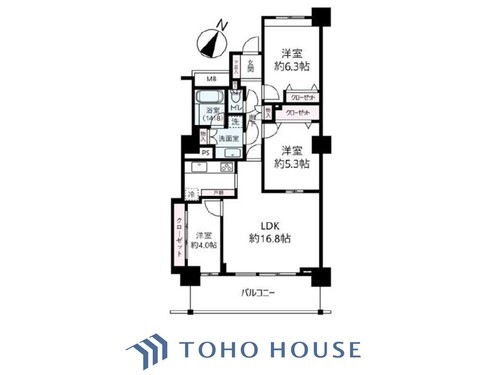 バルコニー / バス・トイレ別 / 独立洗面台 / 脱衣所あり / 洗濯機置き場(室内) / 洗濯機置き場(有) / クローゼット / シューズボックス