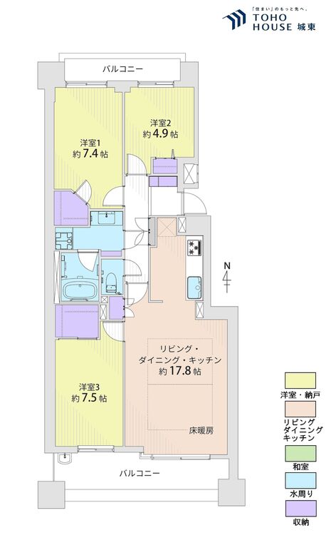 3LDK / 76.02㎡(専有面積)