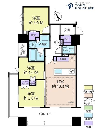 床暖房 / バルコニー / 南面バルコニー / バス・トイレ別 / 独立洗面台 / 洗濯機置き場(室内) / 洗濯機置き場(有) / 追焚機能 / ウォークインクローゼット / クローゼット / シューズインクローゼット / 全居室収納