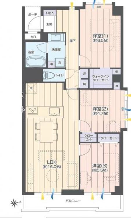 3LDK / 72.98㎡(専有面積)