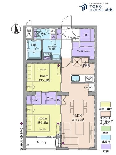エアコンつき / バルコニー / 南面バルコニー / バス・トイレ別 / 追焚機能 / 浴室乾燥機 / 温水洗浄便座 / 独立洗面台 / 洗濯機置き場(室内) / 洗濯機置き場(有) / ウォークインクローゼット / シューズインクローゼット / 全居室収納