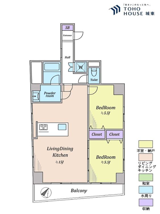 2LDK / 59.55㎡(専有面積)
