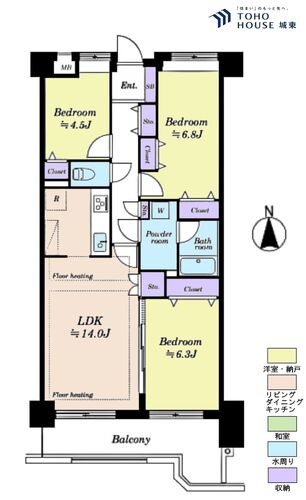 | 総戸数 | 91戸 | 所在階/建物階建 | 3階 / 地上14階建て |