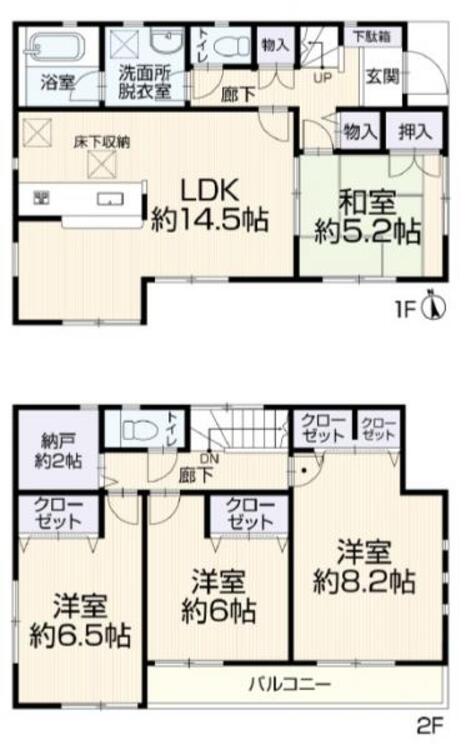 バルコニー / バス・トイレ別 / 温水洗浄便座 / シャワー付洗面化粧台 / 独立洗面台 / 追焚機能 / 浴室乾燥機 / 床下収納 / 全居室収納