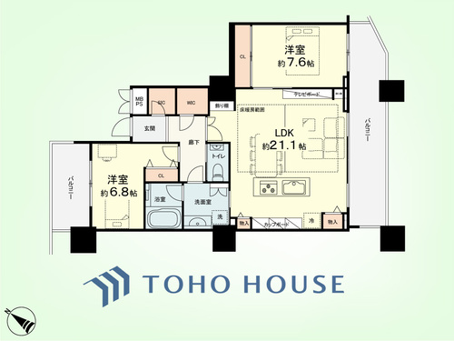 | バルコニー | 有 24.13㎡ | 主要採光面 | 南東 |
