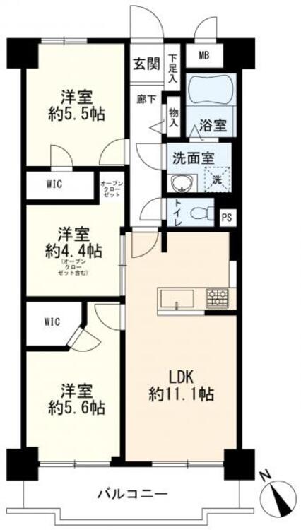 3LDK / 61.04㎡(専有面積)