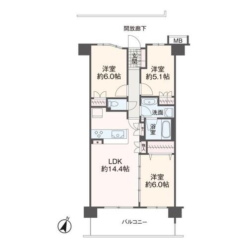 3LDK / 68.38㎡(専有面積)