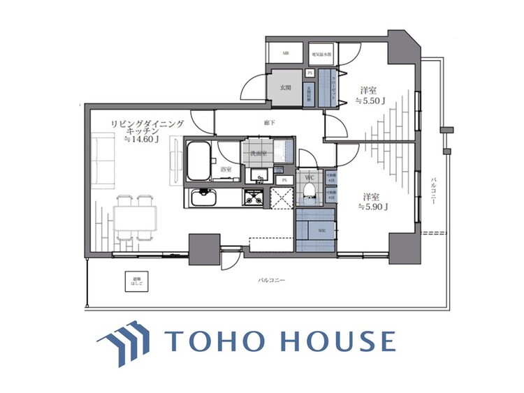 2LDK / 61.25㎡(専有面積)
