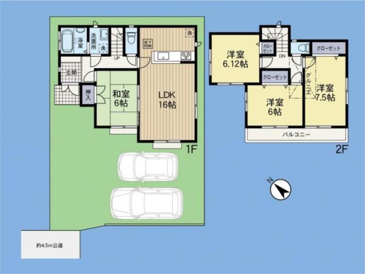 | 備考 | 駐車場:空有 システムキッチン、対面式キッチン、浄水器、シャワー、トイレ2ヶ所、グルニエ、LDK15帖以上、火災警報器(報知機)、浴室乾燥機、床下収納、全居室収納スペース、全居室6帖以上、バルコニー、ペアガラス、TVインターホン、外壁サイディング、24時間換気システム、バス1坪以上、駐車場2台分(車種による)、開発分譲地、平坦地 |