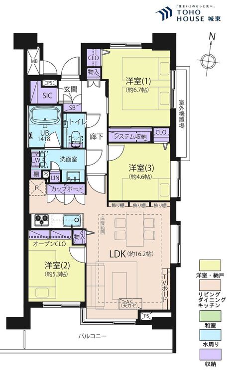 3LDK / 73.59㎡(専有面積)