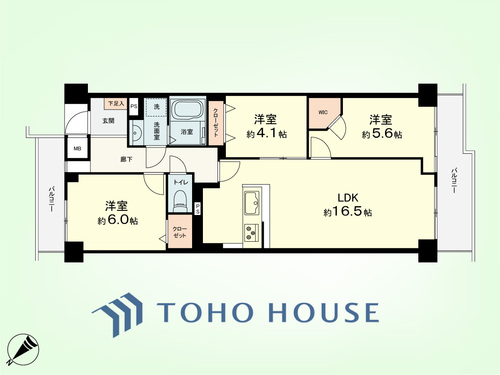 バルコニー / 南面バルコニー / バス・トイレ別 / 浴室乾燥機 / 温水洗浄便座 / 独立洗面台 / 脱衣所あり / 洗濯機置き場(室内) / 洗濯機置き場(有) / ウォークインクローゼット / クローゼット / シューズボックス / 全居室収納