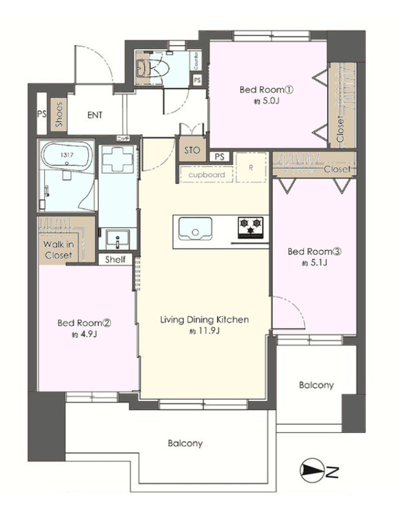 3LDK / 63.22㎡(専有面積)