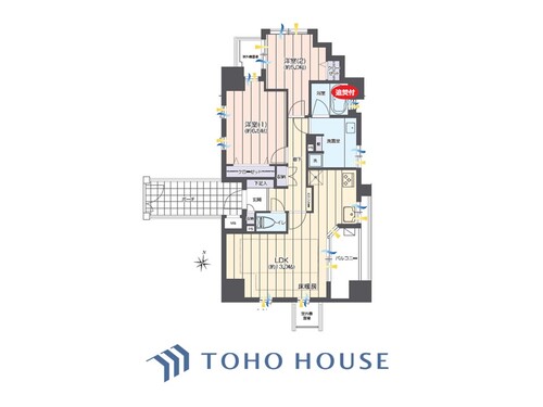 床暖房 / バルコニー / ワイドバルコニー / バス・トイレ別 / オートバス / 追焚機能 / 浴室乾燥機 / 浴室に窓 / 温水洗浄便座 / シャワー付洗面化粧台 / 独立洗面台 / 脱衣所あり / 洗濯機置き場(室内) / 洗濯機置き場(有) / クローゼット / シューズボックス / 全居室収納