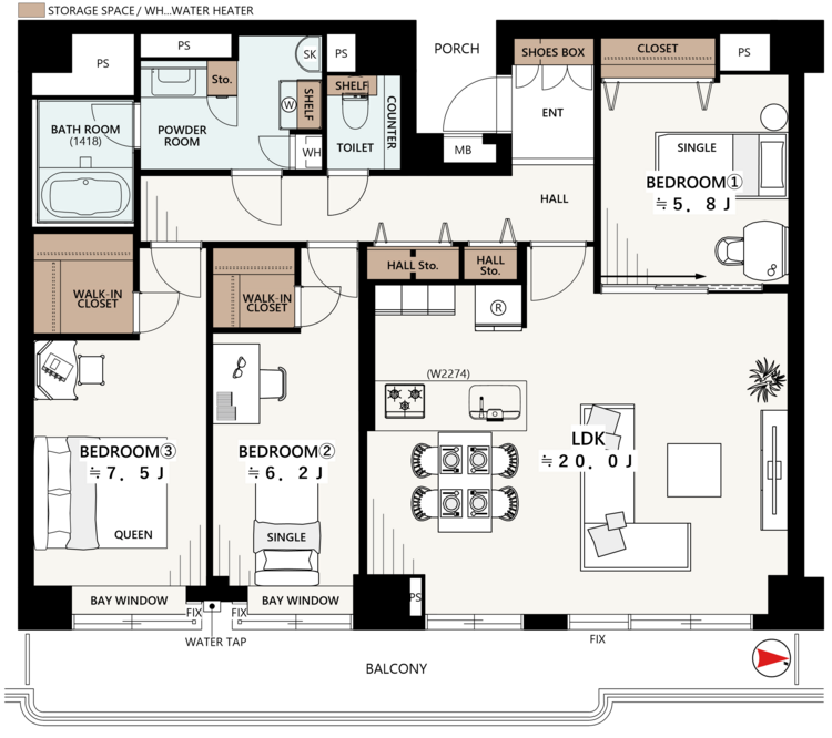 3LDK / 99.86㎡(専有面積)
