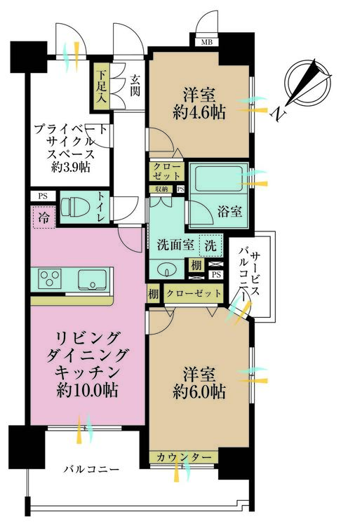 2SLDK / 54.77㎡(専有面積)