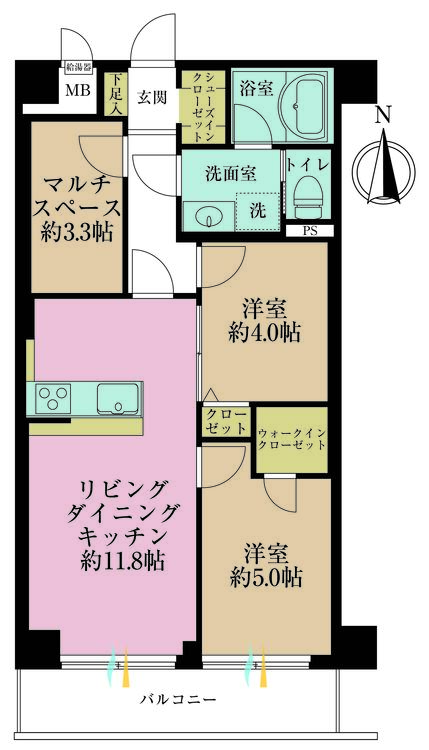 バルコニー / ワイドバルコニー / 南面バルコニー / バス・トイレ別 / 独立洗面台 / 追焚機能 / 浴室乾燥機 / ウォークインクローゼット / クローゼット / シューズインクローゼット / シューズボックス / 全居室収納