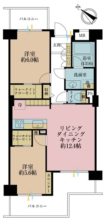 2LDK / 56.98㎡(専有面積)