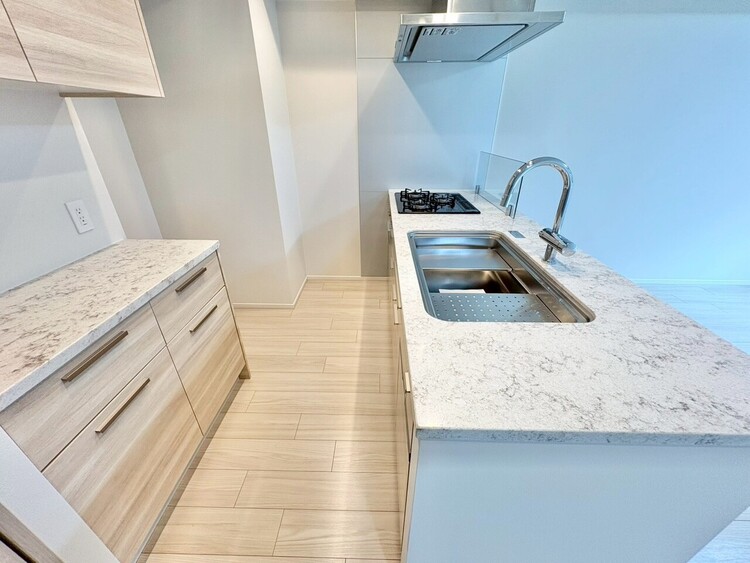 対面式キッチン / 食器洗い乾燥機 / 浄水器・活水器 / コンロ三口 / システムキッチン