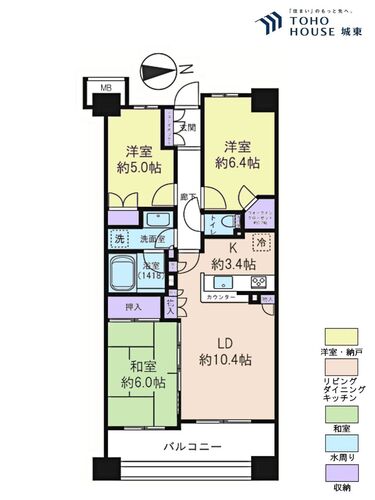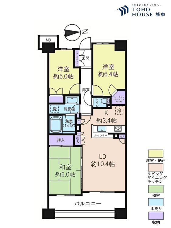 3LDK / 68.58㎡(専有面積)