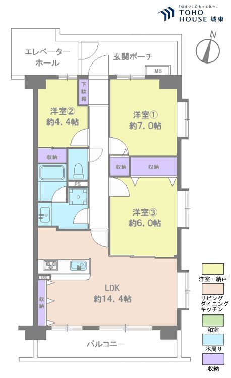 3LDK / 73.6㎡(専有面積)