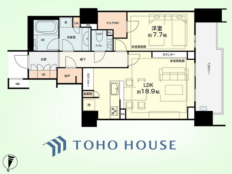 エアコンつき / 床暖房 / バルコニー / 南面バルコニー / バス・トイレ別 / オートバス / 追焚機能 / 浴室乾燥機 / 温水洗浄便座 / 独立洗面台 / 脱衣所あり / 洗濯機置き場(室内) / 洗濯機置き場(有) / ウォークインクローゼット / クローゼット / シューズボックス / トランクルーム / 全居室収納